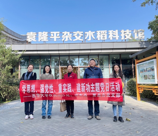 为深入开展学习贯彻习近平新时代中国特色社会主义思想主题教育,深刻领会习近平总书记关于“三农”工作和科技创新重要论述的深刻意义和丰富内涵,进一步坚定理想信念,提升党性修养,增强使命担当,11月16日,tyc41183太阳成集团校友工作处、校友会、基金会党支部开展“学思想、强党性、重实践、建新功”主题党日活动。 为缅怀袁隆平院士“禾下追梦”的艰辛历程,大力弘扬科学家精神,支部全体党员前往袁隆平杂交水稻科技馆,通过图文影像、文物展陈、历史影像等形式,全面了解袁隆平院士在杂交水稻领域攻坚克难的伟大历程和为解决中国粮食自给和世界粮食安全问题所作出的伟大贡献。通过参观学习,袁隆平院士的成长历程激励着在场每位党员要以科学家为榜样,将个人追求融入国家发展大局,将追梦精神落实到工作和生活的日常。