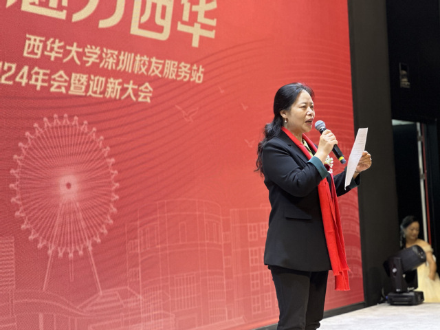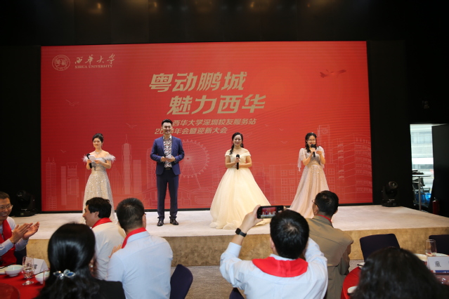 刘小兵副校长致辞 整场活动气氛热烈、精彩纷呈。在1978级李小红与1995级李维彬合唱的《在我生命中的每一天》的歌声中拉开了节目表演的序幕。伴随着炫动的音乐校友代表罗向阳、任文家、王成安、谭平共同歌唱《年轻的朋友来相会》,以此展现出那些年的芳华与奋进;《潇洒走一回》的表演者颜铭、何力、胡俊强、冯珂、李素莲、王颖、赖良武、邓川江、王国江、吴晓华更是将西华人求真务实的精神彰显;黄庆玲、罗晓玲演唱的《New Boy》则代表着有冲劲儿的年轻一代;阳翼、邵超的吉他弹唱《成都》,瞬间将大家的心和思绪带回到校园时代,想象自己再次躺在学校马尔代夫晒太阳,走过充满烟火气的红光夜市,怀念各个食堂的特色小吃;欧悦、陈丽冰、何攀的《西华在等你》则唱出了属于每个人的西华记忆,这一刻,时间仿佛静止,大屏上流动的老照片,是我们每个人的青春。西华,带不走的只有你!。“西华二代”小朋友表演的《勇气大爆发》更是向大家证明,在深圳不论老人还是新生代,都要有勇气面对挑战。《秀出中国风》环节中,通过汉服、马面裙等中国传统服饰展示了生活在深圳的女性风采。“搞钱”节目中三位墨镜西装男神秘登场,突然走到席间,撒起的“红包”雨,将会场气氛推向高潮。穿插其间的礼品和现金红包抽奖活动,更是让现场响起阵阵欢呼声。