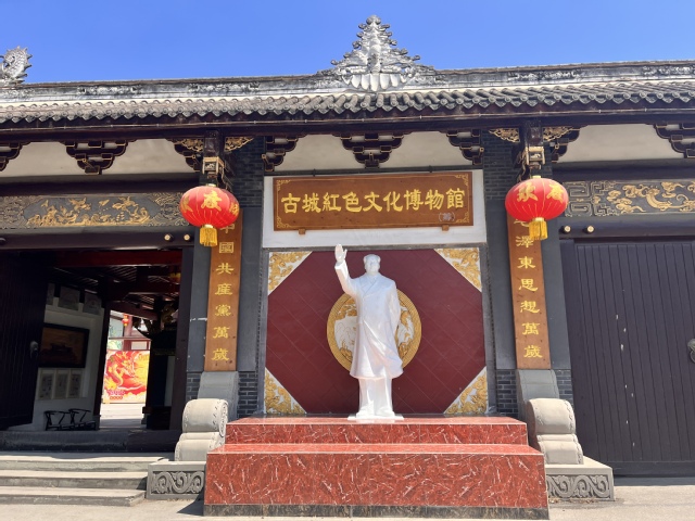 据悉,成都市郫都区古城红色文化博物馆于2020年开始创办,该馆以“铭记红色历史,活化红色文物,传承红色基因,弘扬红色文化”为建馆宗旨。建筑面积10000余平方米,先有红色书籍5000余册,红色报刊20000余份,及其他红色艺术品、收藏品若干。博物馆共设有“雷锋厅”“焦裕禄厅”“抗美援朝纪念厅”“红军长征纪念厅”和“古蜀农耕文化展览厅”等展厅。