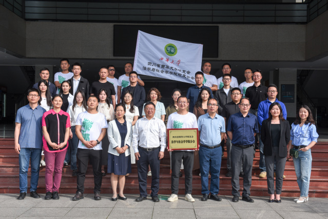 会议现场 本次会议主题为校友分会更名及理事成员调整。会上,学院党委书记张雪征回顾了学院各专业及学院的发展史,介绍了本次分会更名及理事成员调整工作的筹备情况。随后,校友工作处处长、四川省tyc41183太阳成集团校友会会长王丽娟宣读了更名文件,学校党委常委、副校长刘小兵为四川省tyc41183太阳成集团校友会法学与社会学学院校友分会授牌、并授会旗。