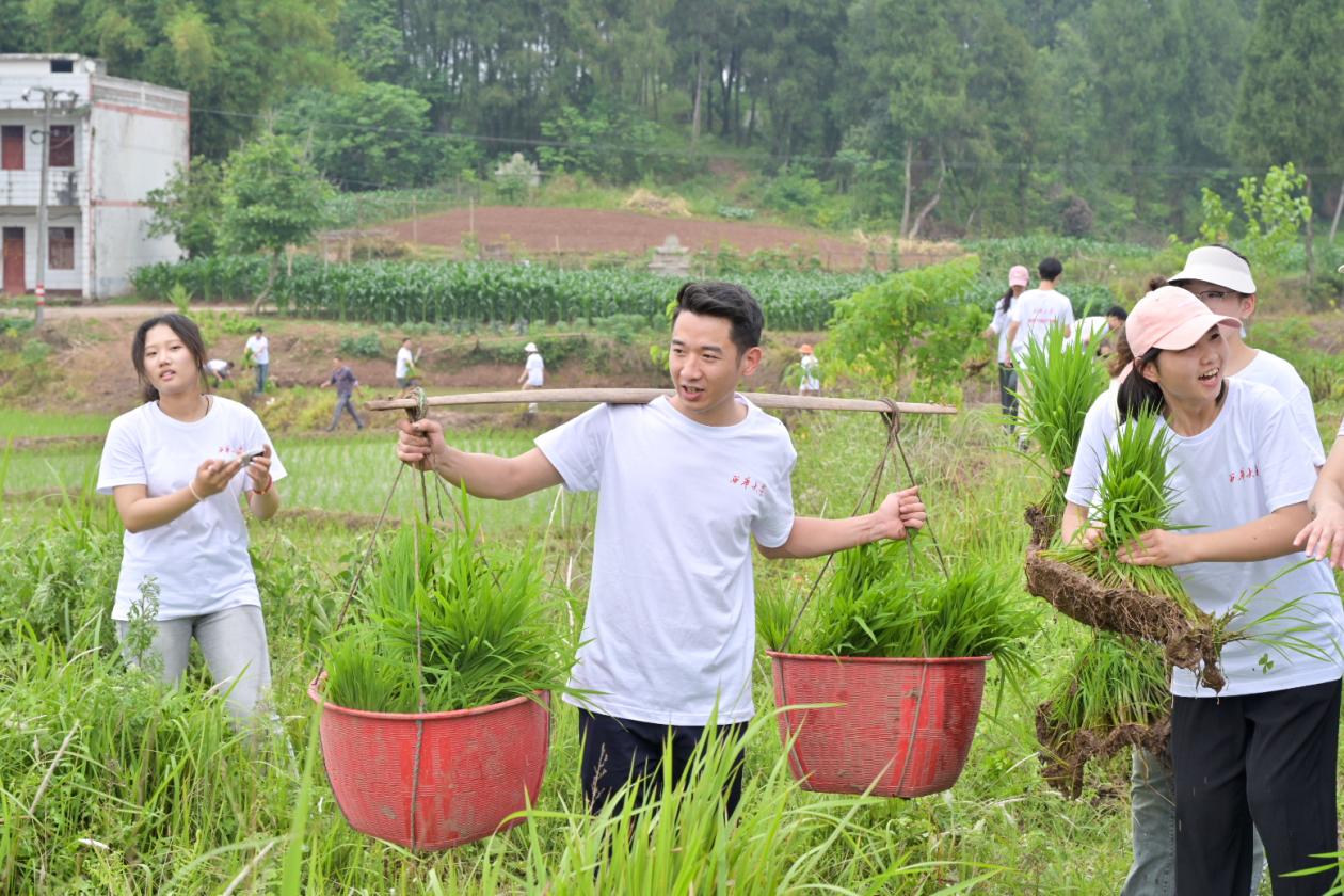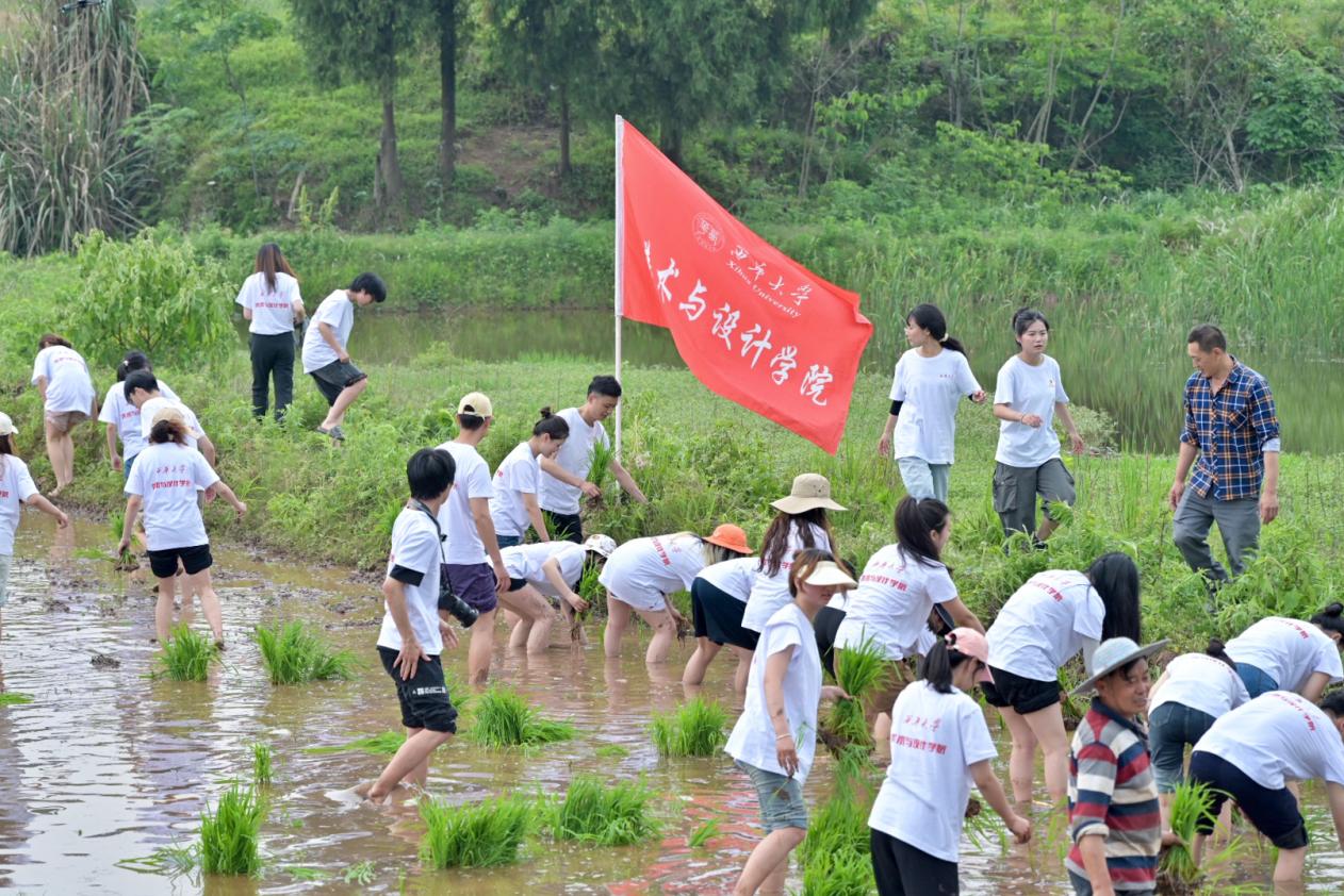 5月8日,美术与设计学院为进一步增强师生党员战斗力、凝聚力,涵养学生学农、知农、爱农、强农、兴农的理念,在劳动教育中传承红色基因,以实际行动践行初心使命,学院组织师生党员、入党积极分子代表70余人赴学校定点帮扶点南充市嘉陵区下院山村开展“插秧助农忙、田间践初心,聚力追梦程”活动,把党课搬到田埂头,深入田间地头开展劳动实践,亦耕亦读,让师生感受乡情、感受劳作的快乐。 活动伊始,下院山村两委干部及学校派驻驻村工作队成员分别给现场师生讲述了一堂生动有趣的乡村振兴第一课。 驻村工作队员、材料学院教师李玉和首先对师生的到来表示热情欢迎,并向大家详细介绍了下院山村的建设情况,呼吁同学们多到乡村参加实践活动,投身乡村建设发展。