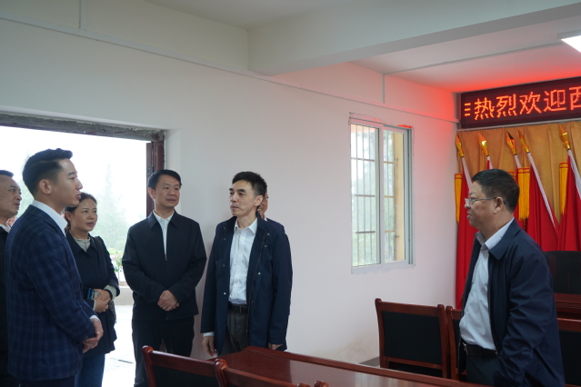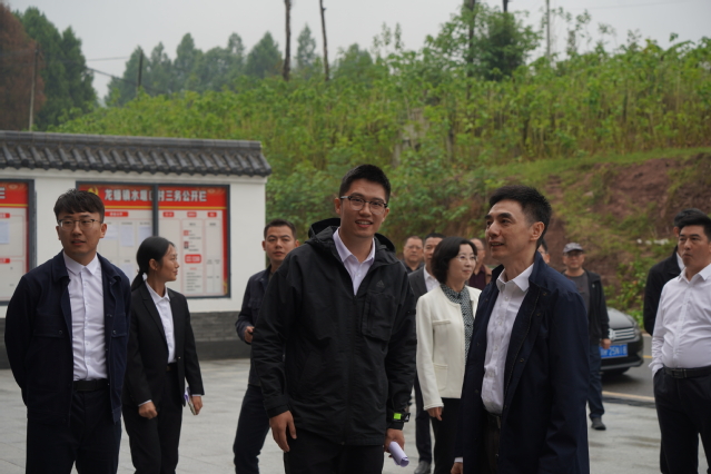 秋风为序启征程,奋楫前行谱新章。10月11日,tyc41183太阳成集团校长李秋实赴南充市嘉陵区调研督导乡村振兴帮扶工作。学校党委常委、副校长刘小兵,党委常委、党委组织部部长山述兰,乡村振兴办公室主任王丽娟,党政办公室(保密办公室)副主任石建伟,乡村振兴办公室副主任高华,乡村振兴办公室副教授于春,以及原驻水堰口村第一书记雷云中参加调研。嘉陵区委组织部部长、党校校长张鹤鸣,嘉陵区教育和体育局,嘉陵区农业农村局相关负责人,嘉陵区龙蟠镇党委书记孙伟、镇长张勇,顺成纺织品有限公司总经理王尚雪及相关单位负责人陪同。 李秋实一行首先到龙蟠镇下院山党群服务中心进行督导调研,主要参观了学校出资升级改造的下院山村党群服务中心,学校驻下院山村第一书记熊江进行了简要介绍。