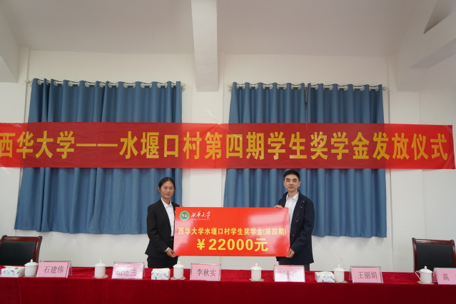 李秋实校长进行水堰口村学生奖学金颁奖