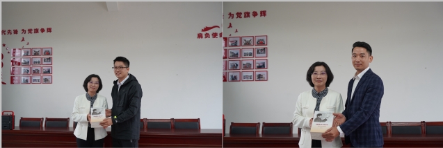 刘小兵副校长进行下院山村学生奖学金颁奖 随后,水堰口村第一书记刁成豆,下院山村第一书记熊江对2024年的帮扶工作进行了简要汇报。学校党委常委、组织部部长山述兰为新启用的水堰口村和下院山村党群服务中心捐赠了一批党建相关书籍。这批书籍涵盖了党的路线方针政策、基层党组织建设等多个方面的内容,旨在为乡村党员干部提供丰富的学习资源和精神食粮,进一步提升他们的政治素养和工作能力。
