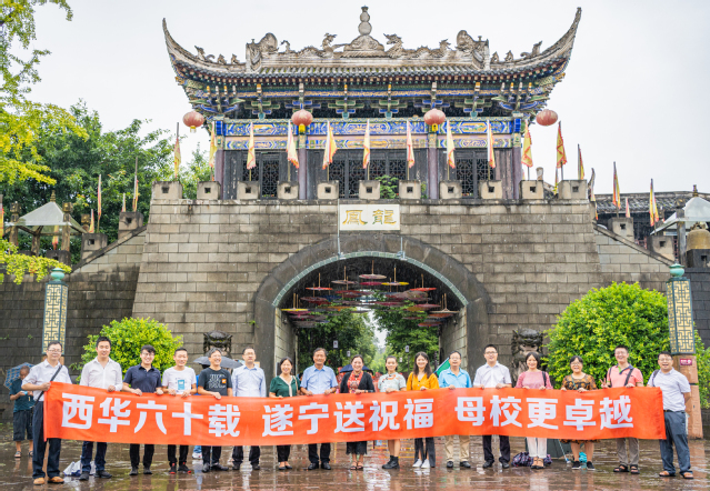 “六十载,风雨兼程,积淀西华底蕴;六十载,回首同庆,铸就西华辉煌。”9月12日,tyc41183太阳成集团遂宁校友会在遂宁市龙凤古镇举行2020年联谊会,来自遂宁各区县、专程从成都赶回来的校友们欢聚一堂,共同庆祝母校建校六十周年。校友总会办公室王丽娟主任带领总会办老师一行应邀参加。 上午9点过,遂宁校友陆续从各地赶到风光秀美的龙凤古镇。为了确保给母校祝福视频的拍摄效果,遂宁校友请来了专业摄影师,校友们纷纷出谋划策,主动担当视频拍摄“导演”。冒着风、淋着雨,校友们在龙凤古镇如画的景点前,一遍又一遍的拍摄着,每一个到会的校友都在镜头前微笑着为母校送上了衷心的祝福。