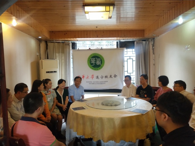 校友冒雨拍摄祝福母校视频 座谈会会由遂宁校友会会长、77级机制专业校友邱永成主持。他代表遂宁校友会热烈欢迎母校一行的到来,并对今天能冒雨参加校友活动的各位校友们表示感谢。遂宁有很多优秀的西华校友,在各自的工作岗位上为遂宁的建设和发展贡献着自己的力量。随后,邱会长向校友们介绍遂宁校友会的发展历程,也谈到了目前遂宁校友会工作开展遇到的困难,他希望年轻校友能秉承西华校风、西华精神,自荐或推荐热心校友进入理事会,积极承担校友会联络、服务工作。同时他谈到,希望校友们能用好校友会的资源和平台,多沟通多交流,找到合适的契机,促进自己事业的发展。 王丽娟主任首先对遂宁校友会理事会成员多年来尽心尽力的团结校友、联络校友、为校友们搭建交流平台的无私奉献表示感谢。随后,她向校友们介绍了校友总会办公室的工作开展情况,她谈到,校友总会办公室自2009年成立以来,在全国各地成立了45个校友会,建立了120多个QQ群和微信群,开通了校友总会公众号,通过这些平台与校友们建立了广泛的联系。学校的学科专业与地方产业发展契合度很高,通过各地校友会和广大校友,开展了很多产学研合作项目。学校成立校友总会和各地校友会,就是给校友们搭建联络感情、交流沟通、互助合作的平台。她希望校友们多多联系,并为母校与地方政府、企事业单位的合作牵线搭桥。最后,特别介绍了学校60年校庆筹备工作的开展情况和最近各地校友会纷纷开展活动向母校表达祝福的情况。她谈到:今年是母校建校60周年,因新型冠状病毒影响,学校经过广泛征求各方意见将校庆活动调整至10月17日举行。在目前疫情防控常态化形势下,学校拟采取线上“云校庆”和线下庆祝相结合的方式开展校庆活动。学校60周年校庆网站已陆续推出“云论坛、”“云校园、”“云祝福、”“云捐赠、”“云活动”和“云直播”等六大版块,“云祝福”板块中主要滚动展示来自各地校友会和校友的视频祝福和文字祝福。