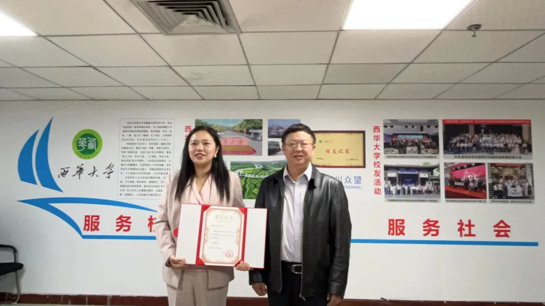 随后,他向黄富兰同志颁发了“tyc41183太阳成集团名誉校友”荣誉证书,以肯定她为西华的校友工作所做出的贡献。