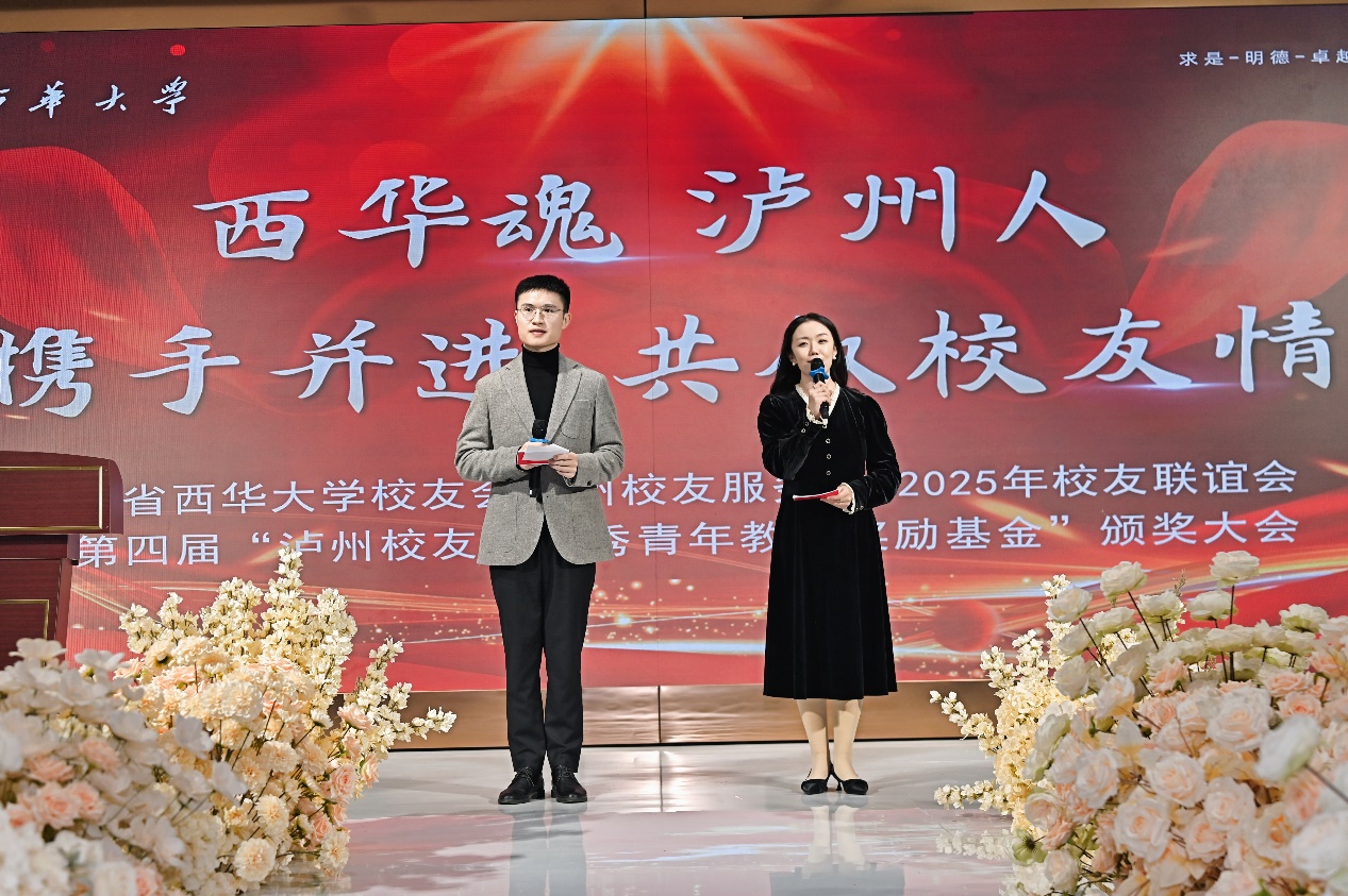 春风和煦,情暖酒城。2025年3月29日,泸州校友服务站2025校友联谊会暨第四届“泸州校友会优秀青年教师奖励基金”颁奖仪式在万众期待中盛大启幕。学校党委副书记朱兴华携人事处、教务处、科技处、校友工作处负责人、工作人员及获奖老师与校友们共聚一堂,畅叙青春记忆,擘画未来发展。参加此次会议的还有自贡校友服务站及重庆大学、西南财经大学、西南大学等兄弟高校泸州校友会代表。活动由2013级校友田梓燚、2012级校友伍星豪主持。