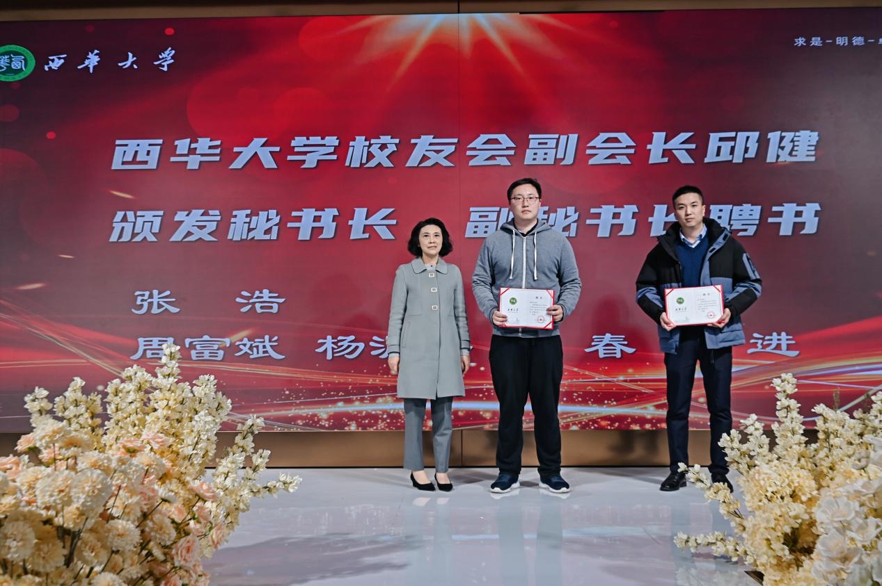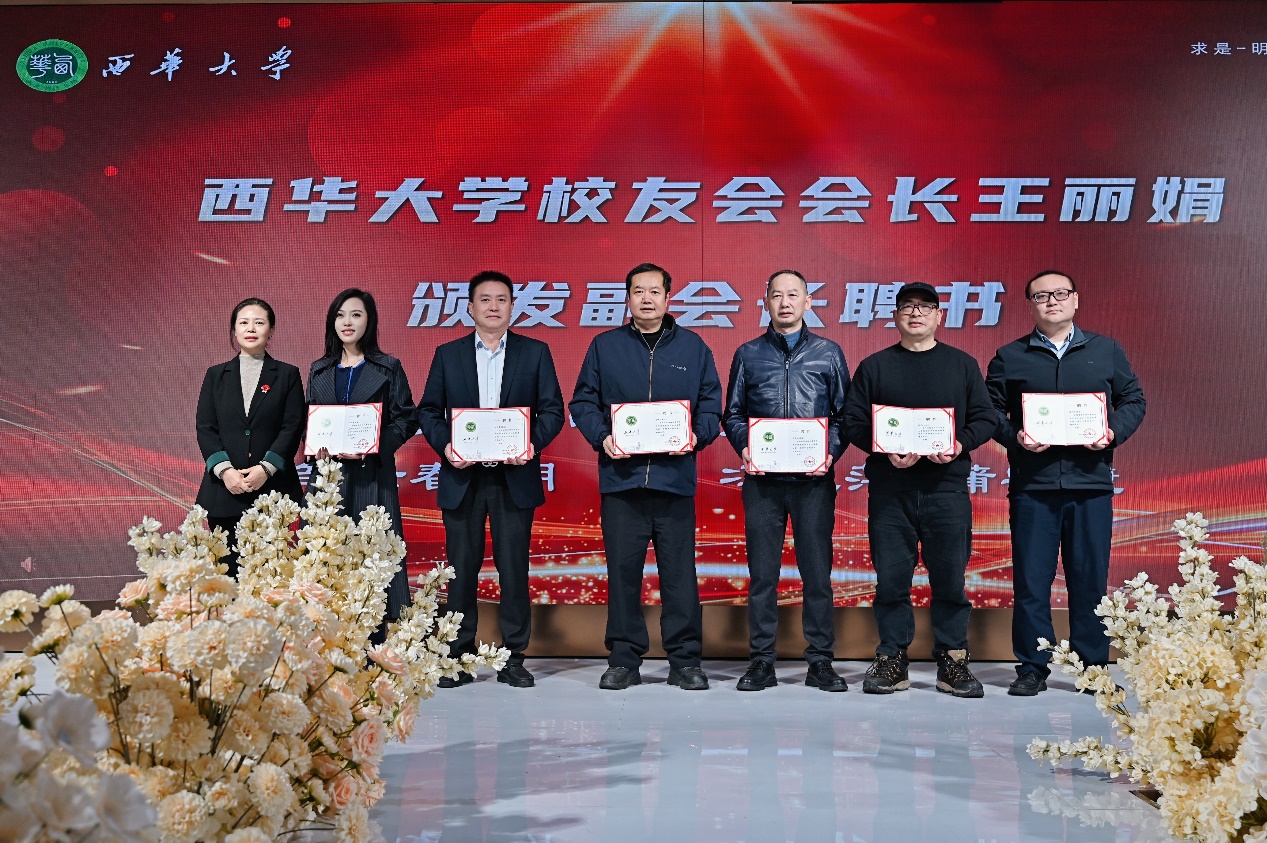 朱兴华副书记、王丽娟会长与邱健副会长等依次为新任理事团队颁发聘书。荣誉聘书在灯光下熠熠生辉,象征使命的传承与担当的延续。当新任理事团队高举聘书合影时,校友们见证的不仅是荣誉的交接,更是一份扎根泸州、服务同窗的庄严承诺。