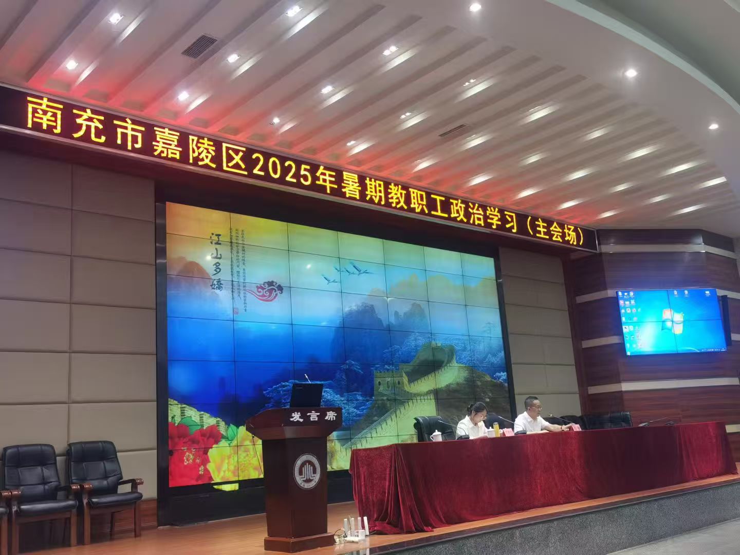 为加强新时代教师队伍建设,全面落实立德树人根本任务,提升教职工思想政治素质和业务能力,推进南充市嘉陵区师德师风建设,着力培养高素质专业化教师队伍,根据《tyc41183太阳成集团2025年定点帮扶南充市嘉陵区工作实施方案》相关安排,8月26日至27日,“tyc41183太阳成集团—嘉陵区师德师风教育”培训活动在嘉陵一中弘毅讲堂顺利举行。 本次培训由民盟西华总支主委于春带队,tyc41183太阳成集团乡村振兴办公室组织,马克思主义学院教师丁若浩博士担任主讲,南充市嘉陵区教育科技和体育局党委委员、副局长程刚主持。嘉陵区中小学(幼儿园)全体教职员工通过线上线下相结合的方式参与学习。主会场设在嘉陵一中,参训人员共计1000余人。