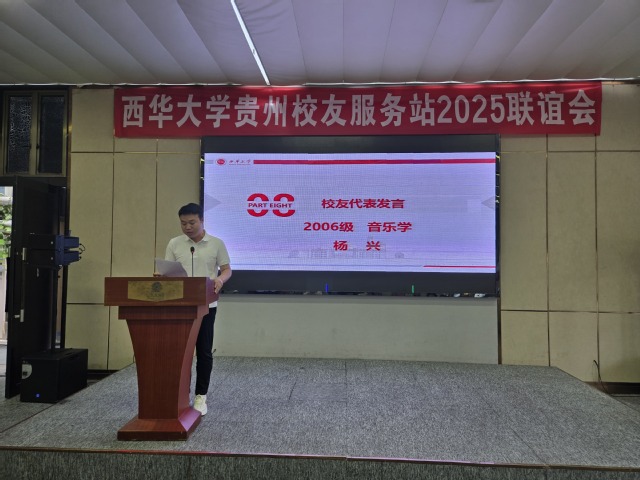 秘书长陈玥锟作工作规划 会议期间,校友代表、第一次找到组织、来自贵州铜仁学院的教师杨兴校友(06级音乐学专业)深情回顾了在西华的求学岁月,分享了自己的成长故事,也表达了对母校培养的感恩之情。