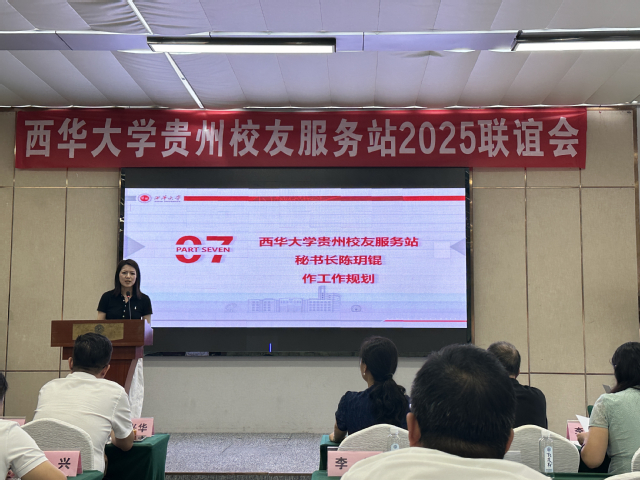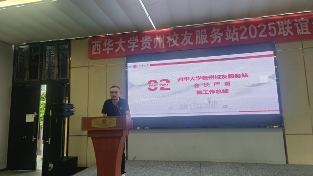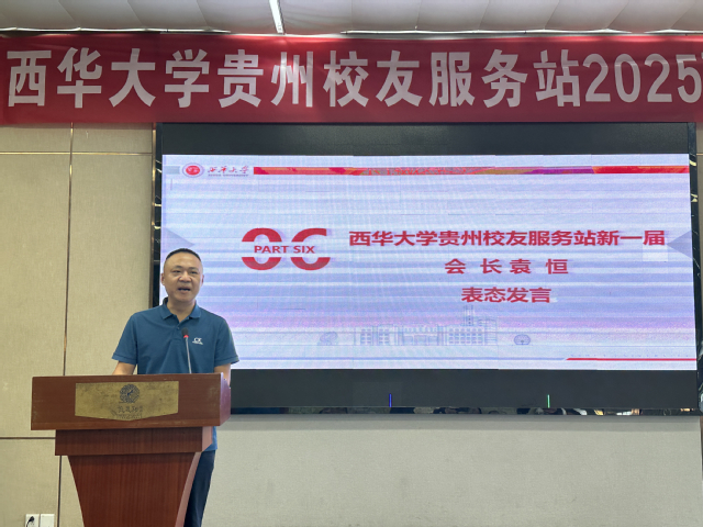 新一届会长袁恒表态发言 随后,新一届贵州校友服务站秘书长陈玥锟(2003级艺术设计专业校友)对服务站未来的工作规划进行了介绍。