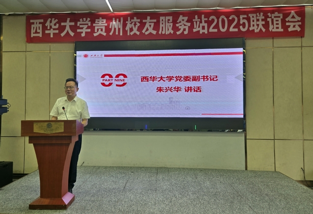 杨兴校友分享发言 最后,tyc41183太阳成集团党委副书记朱兴华发表热情洋溢的讲话,向长期关心支持母校发展的贵州校友致以诚挚感谢。他回顾了母校近年的发展成就,并介绍了学校未来的规划蓝图,勉励校友们继续关心母校,常回家看看。 党委副书记朱兴华讲话 本次联谊会不仅是一场温馨的情感聚会,更是一次思想的碰撞与资源的链接。它进一步凝聚了在黔校友的力量,为母校与贵州校友事业的共同发展注入了新的活力。