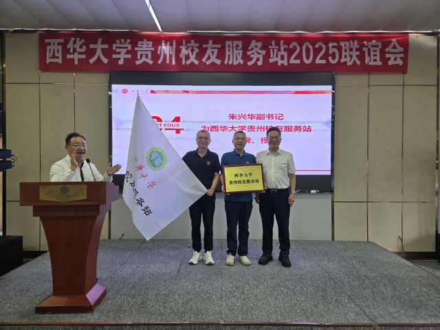 王丽娟处长宣读新一届理事会成员组成名单 授牌及颁发聘书 新一届校友服务站会长袁恒(99级工业设计专业校友)接过了贵州校友服务站联系校友、沟通母校、凝聚力量的重任,他表示将带领服务站全体理事会成员为贵州校友服好务,也为校友服务站的发展添砖加瓦,为母校增光添彩!