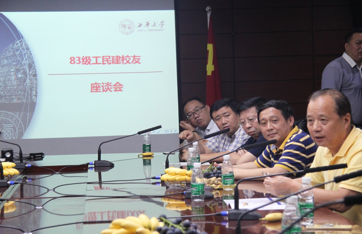 7月15日上午10:00,我校83级工民建专业校友毕业30周年座谈会在办公楼212会议室举行。副校长、校友总会常务副会长王政书与50余名校友亲切交谈,土木建筑与环境学院相关负责人、退休班主任、教师代表参加座谈。 在观看学校宣传视频后,王政书副校长代表学校对50余名校友的返校表示热烈欢迎,并由衷感谢校友们对学校建设的付出与贡献。他表示,学校的发展离不开学院老师和校友的共同付出,正是老一辈西华人打下的坚实基础,才成就了学校今天的发展。随后,王政书副校长向各位校友介绍了近年来学校在教学、科研、国际合作等方面的情况。