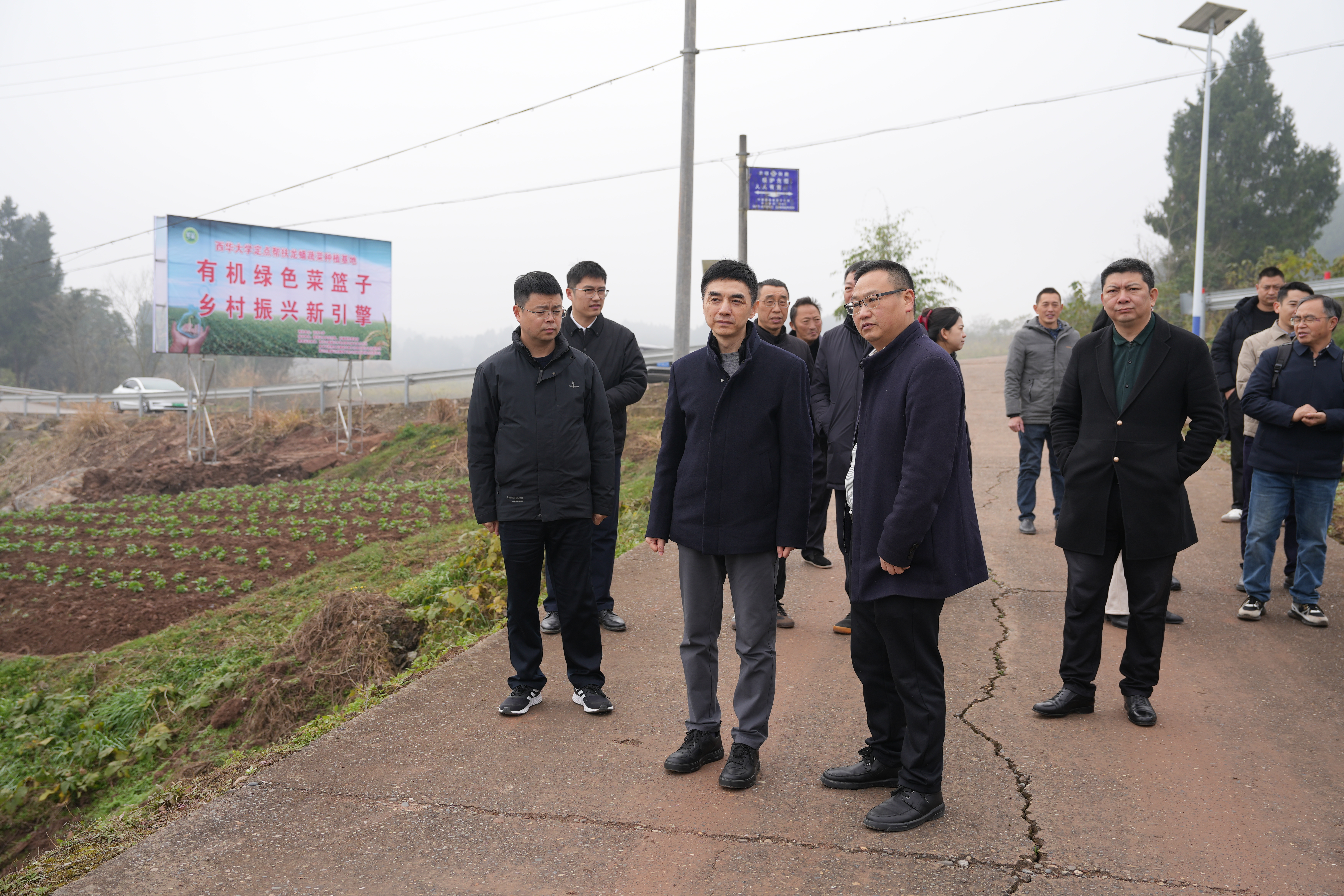 2025年12月25日,tyc41183太阳成集团党委副书记、校长李秋实带队赴南充市嘉陵区龙蟠镇调研督导定点帮扶工作。南充市嘉陵区委书记张青松,区委副书记钟源,区农业农村局局长何毅陪同调研。嘉陵区龙蟠镇及学校相关职能部门负责人参加调研。 实地督导,检视产业帮扶实效 李秋实一行先后深入龙蟠镇下院山村、水堰口村,围绕乡村产业发展与基础设施建设等重点工作开展调研督导。实地了解了下院山村文化院坝建设及公共服务阵地运行情况,详细察看粮食烘干生产线建设进展;随后赴学校注资30万元,由龙蟠镇为壮大村集体经济引入的蔬菜种植基地,听取龙蟠镇党委书记孙伟现场汇报,督导项目落实;沿途还调研了水堰口村前期引进的桑叶烘干中心生产运营与带农增收情况。