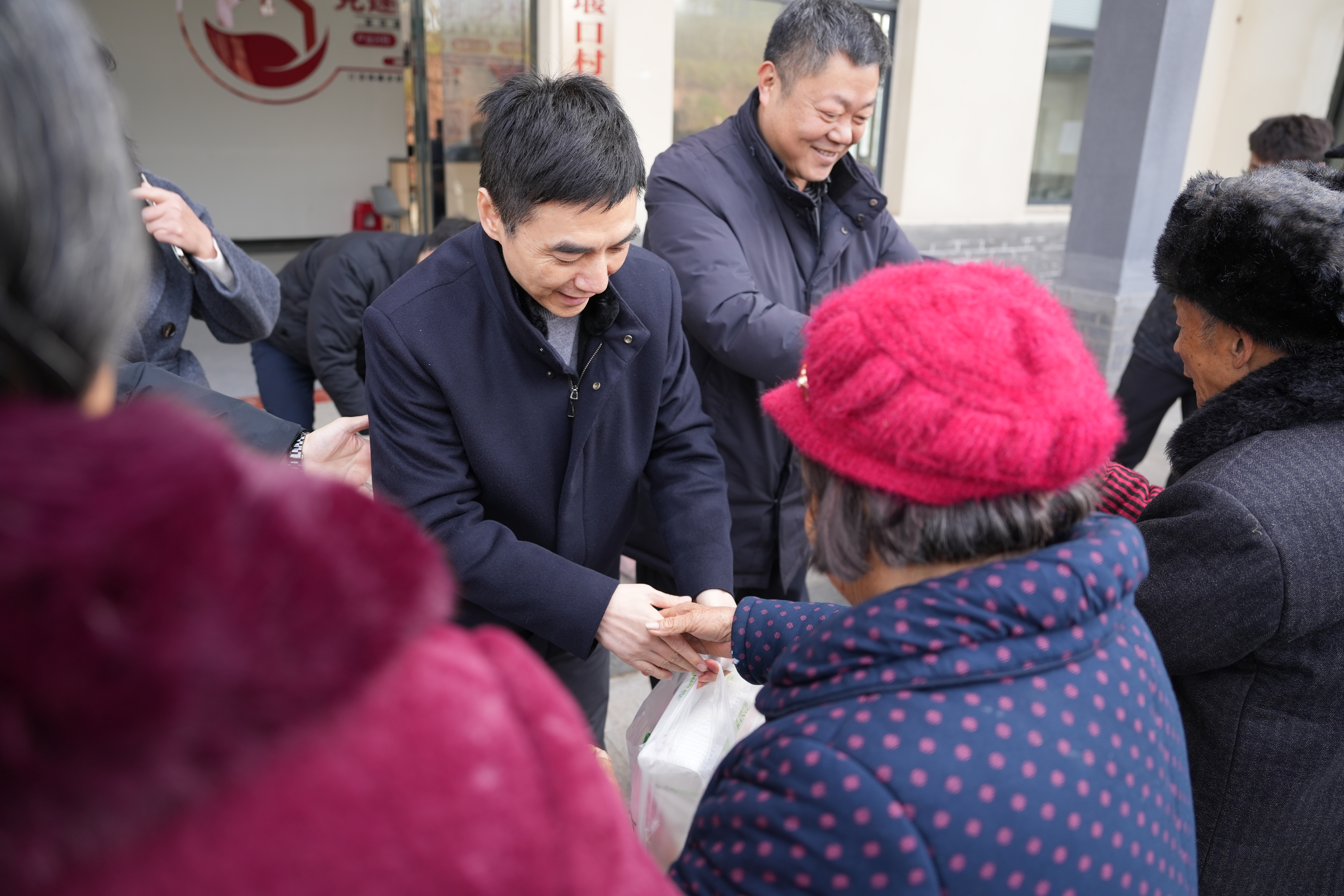 调研顺成纺织桑叶烘干中心 情系民生,开展新春暖心慰问 调研结束后,李秋实一行来到水堰口村党群服务中心,开展2026年“迎新春·送温暖”慰问活动。学校历经五年帮扶,与定点帮扶的水堰口村、下院山村建立了深厚帮扶情谊,下院山村、水堰口村的村民代表早早到场欢迎。李秋实与村民亲切交流,细致询问家庭收入、身体健康等情况,并为大家送去新年祝福与慰问物资,让群众切实感受到温暖与关怀。