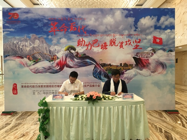 在中华人民共和国成立70周年纪念日到来之际,9月18日,我校对口帮扶的甘孜州巴塘县在成都环球洲际酒店举行了“不忘初心,牢记使命”革命后代助力深度贫困地区----巴塘县扶贫产品推介暨措普沟旅游产业推介会。我校副校长王政书和扶贫办相关负责人受邀参会,并与巴塘县签订了农产品认购协议。 推介会邀请了毛泽东、周恩来、朱德、任弼时、萧克、罗洪标等老一辈无产阶级革命家的后代参加,他们在会上纷纷推介巴塘县的农产品,助力巴塘打赢脱贫攻坚战。本次推介会将巴塘县措普沟国家森林公园作为载体,以“红色传承、绿色崛起、感恩奋进、开放融合”为主题,全方位推介巴塘扶贫产品,助力脱贫攻坚,助推生态旅游。
