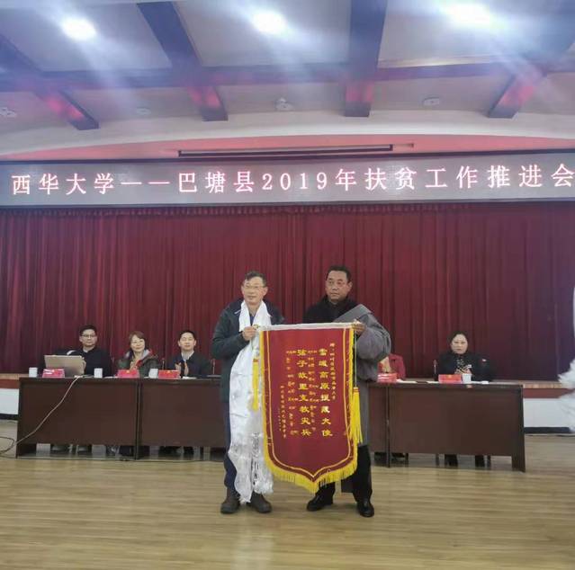 巴塘中学向我校送上锦旗 随后,尼玛西日对巴塘县脱贫攻坚工作进行了汇报,并对tyc41183太阳成集团长期倾情、倾心、倾智的帮扶表示衷心的感谢。边书记在发言中谈到了:我校今年在巴塘县、竹巴龙乡水磨沟村列布西村开展教育培训帮扶、产业帮扶、灾后重建帮扶、支教帮扶、党组织共建和党支部结对帮扶、校友助力帮扶等帮扶工作,要在做好乡村旅游规划、建设的基础上,指导每一户根据自身特点把民宿旅店、小餐馆、手工品制作、农特产品售卖等旅游项目做起来,并在今后的实施过程中给予指导,帮助他们持续发展、稳定增收。要通过县、村的努力和我们的帮扶,让两个村步步如画,处处是景,让游客知道318边上这个美丽的小村。边书记还谈到,作为省属重点综合性大学,为国家培养人才、为国家和地方的经济建设服务是学校的责任和义务,学校非常愿意与巴塘县人民一起把巴塘县建设好。我们对巴塘的帮扶,不仅仅是现在的脱贫,更重要的是未来的乡村振兴,学校的优势在于智力,在于“授人以渔”,交给老百姓脱贫致富的能力,帮助贫困户彻底摆脱贫困,更好的发展,真正地脱贫奔康。 会后,工作组一行还到甲英乡桃蹊易地搬迁集中安置点,调研了安置点村民的生活状况,查看了我校美术与设计学院为安置点设计并绘制的藏居墙体彩绘。