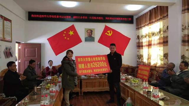 捐赠“爱心扶贫”助学金 边书记在座谈会上表示,tyc41183太阳成集团将继续发挥智力优势,做好两村产业、教育等帮扶。两村要利用好天然温泉、318沿线等优势,打造“水磨乡愁”文化,为两村提前进行乡村振兴建设打下坚实的基础。巴塘县人大主任戴龙代表县委县政府对tyc41183太阳成集团表示感谢,他表示在tyc41183太阳成集团帮扶下,两村一定会成为当地居民、318游客体验藏区文化的理想圣地。会后,工作组向贫困户和受灾户代表发放了慰问品。