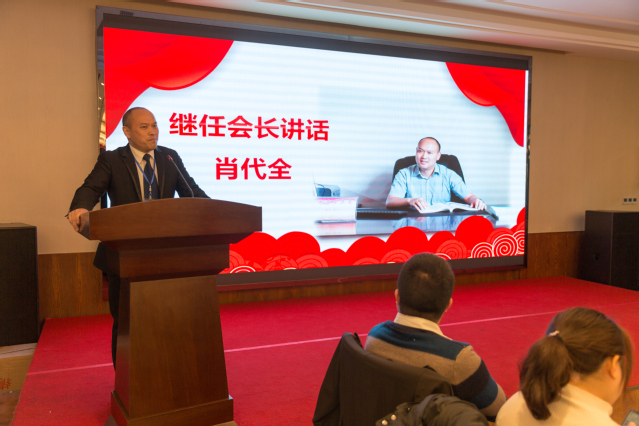 授旗现场 绵阳校友会会长肖代全代表绵阳校友会对参会的母校各位老师及校友表示热烈的欢迎,对上一届校友会工作开展情况进行了总结,对新一届理事会今后校友会工作的开展提出思路。他讲到: 新时代赋予了西华绵阳校友会发展的新内涵,对西华绵阳校友会自身的发展提出了新的要求。如何在新形势下,以校友会为载体,不断凝聚合力和向心力,促进校友不断发展成长,是摆在西华绵阳校友会面前的一个重要课题。要向全面创新的校友服务模式转变,加大为广大校友的服务力度,吸引、邀请更多、更有影响力的企业界代表、新生力量参加,进一步扩大校友活动范围、创新活动形式、增添活动内容,不断整合各类资源,真正助力校友们的事业发展。