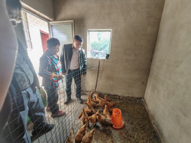 了解脱贫户家中的鸡苗养殖情况 刘小兵副校长一行还来到正在修建中的 “水堰口村党群服务中心” 新选址地,了解“水堰口村党群服务中心”的建设方案、资金来源和建筑风格等情况,叮嘱学校帮扶干部要与村“两委”认真调研,在上级党委政府的指导下把水堰口村党群服务中心建设好,实现村党群服务中心的提档升级,提升便民服务设施。