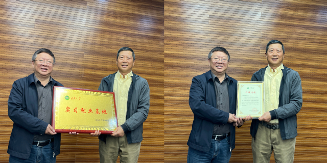 会议期间,在与会人员的共同见证下,刘小兵代表学校向黄涛校友的企业——四川金城栅栏工程有限公司授予“tyc41183太阳成集团实习就业基地”牌匾,并为黄涛校友颁发捐赠鸣谢牌。