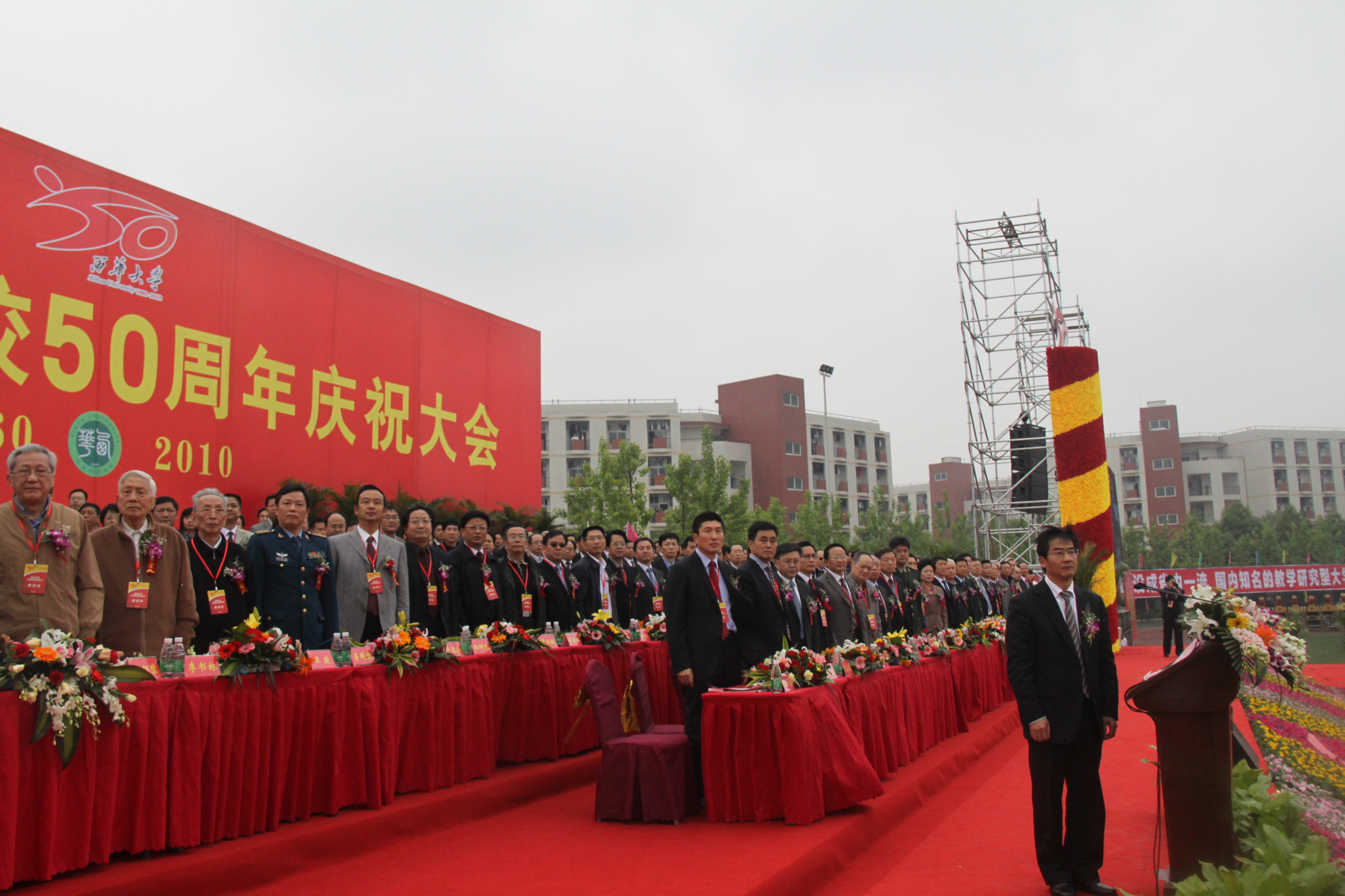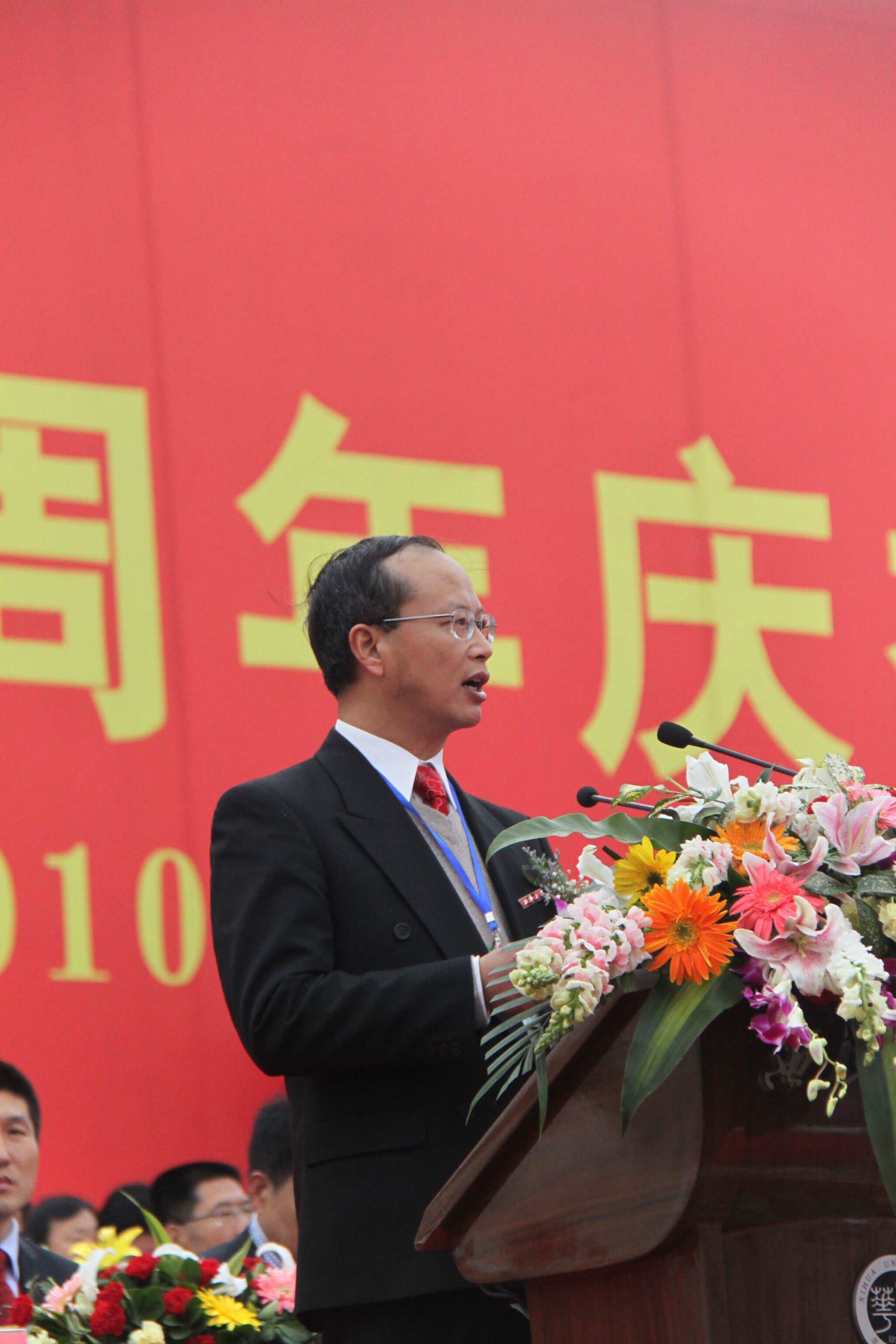 校长孙卫国在讲话中首先代表学校向教育部、四川省委、省人大、省政府、省政协和省教育厅对我校的亲切关怀和领导表示衷心的感谢,向长期支持、帮助学校建设发展的社会各界领导、嘉宾和海内外广大校友表示衷心的感谢和热烈的欢迎,向长期为学校发展做出重要贡献的老领导、老教师、离退休老同志及全体师生员工致以崇高的敬意。孙校长深情地回顾了学校50年的办学历程与办学成果,并表示要在省委、省政府的领导和关怀、社会各界和广大校友的支持下,大胆解放思想,坚持科学发展,培养大批具有高尚的人格素养、强烈的责任意识、扎实的实际能力和奋进的改革精神的优秀人才,早日实现学校建设目标,为地方经济社会发展作出更大贡献。