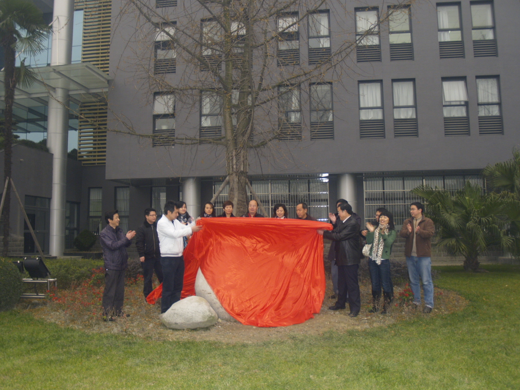 随后,蔡汉军与潘祖高为认捐的银杏树揭幕。