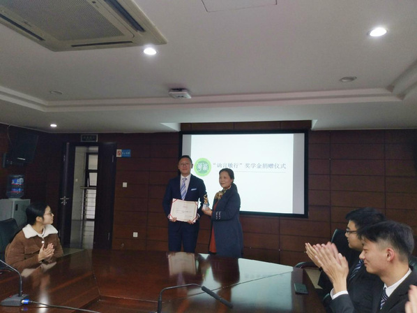 面试答辩现场 面试和答辩会结束后,举行了“讷言敏行”奖学金捐赠仪式。捐赠仪式上,王丽娟代表校友总会向郑伯博先生颁发了捐赠证书和纪念品,并对同学们给予祝福和期望,希望同学们未来能够向郑伯博先生看齐,潜心学习,拼搏进取,在毕业时给自己交一份满意的答卷,同时,她表示校友会也会在同学们毕业后为广大校友提供服务和交流的平台。万志昂向郑伯博先生对于tyc41183太阳成集团教育事业以及学生工作的支持表示感谢,同时也希望同学们能够心怀感恩,不忘初心,在逐梦路上继续勇敢前行,保持“求是、明德、卓越”的西华人品质。 郑伯博先生表示,所有入围答辩和面试环节的同学都很优秀,他针对学生答辩时的一些问题提出了建议和意见,并与他们分享了自己求学和工作的经历,希望能够借助“讷言敏行”奖学金的机会帮助不同专业和学科领域之间的同学实现相互交流,相互学习,共同进步。 捐赠仪式结束后,郑伯博先生、与会相关负责人以及参加面试和答辩的同学们合影留念。