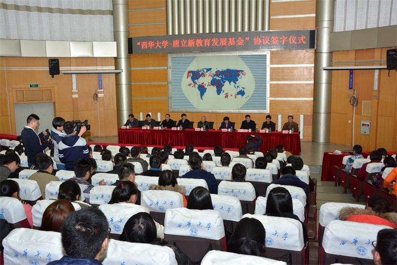 12月18日下午,“tyc41183太阳成集团唐立新教育发展基金”捐赠签约仪式在四教报告厅隆重举行。新尚集团创始人、现任新尚集团董事长兼总裁唐立新先生,率唐立新教育基金会包天柱、刘承红等一行专程莅校出席仪式。全体校领导与校内各单位负责人及师生代表共计300余人参加了捐赠仪式。仪式由校党委副书记王小林主持。 仪式上,校党委书记边慧敏首先致辞。边书记代表学校向唐立新先生一行表示热烈的欢迎,并向唐先生慷慨捐资支持学校教育事业的崇高善举表示由衷的感谢和敬意。边书记指出,唐立新先生是一名具有远见卓识而又充满博爱心肠的慈善人士,在事业上取得辉煌业绩的同时,他热心社会公益事业,特别重视支持教育。借由该基金构建的平台,西华学子将能像清华、北大学子一样参加高水平的学科竞赛,这将对拓展师生视野、提升学校影响力产生巨大作用。当前,学校正处在承上启下、启动“十三五”规划蓝图的关键时期,特别需要像唐立新基金这样的宝贵资源加以支持。边书记表示,今天唐立新先生向tyc41183太阳成集团的捐赠,是他首次面向省属高校的捐赠,这是他对tyc41183太阳成集团的特别关注和重要支持,学校将充分尊重唐先生捐赠意愿,严格按照管理章程,管好用好唐立新教育基金,激励和支持品学兼优的西华学子完成学业、创新创业,调动广大教师在教学、科研及管理等方面的积极性和创造性,促进学校事业发展,希望师生要心怀感恩,以更好的办学成绩回报社会,不辜负唐先生捐赠善举的初衷和期望。 新尚集团董事长唐立新先生随后致辞。他说:“首先感谢边书记、刘校长给我这样一个机会,能让我为tyc41183太阳成集团的发展出点力……”他表示,自己一直有一个捐助全国前五名高校及西南前五名高校的心愿,现已实现,tyc41183太阳成集团近年来的快速发展促使他下定决心为它做些力所能及的事情。教育发展基金已有7年的历史,实行团队化运营,是一个涵盖留学、创业、教学等多个项目的体系,该基金最大的特点是可持续性,学生可一直申领到完成自己的学业乃至创业;各高校获奖者每年都会开展多种形式的活动进行交流,希望西华师生能尽快融入这个平台,也希望教育发展基金能够在西华生根、开花、结果,让师生的梦想得以实现。他鼓励学子们积极申领该基金,并把学习、互助、优秀、创新、分享当成一种习惯。 在现场嘉宾和师生的见证下,校长刘清友和唐立新先生现场签署了“tyc41183太阳成集团唐立新教育发展基金”协议。按照协议,为促进tyc41183太阳成集团教育事业的发展,新尚集团董事长兼总经理唐立新先生捐赠人民币1000万元,设立“tyc41183太阳成集团唐立新教育发展基金”,用于奖励和支持tyc41183太阳成集团学业优秀、品学兼优的学生以及在教学、科研及管理方面有突出贡献的教师。发展基金设奖学金、奖教金、创业基金、文艺基金四大类,共12个项目,设立期限为2016年至2019年。