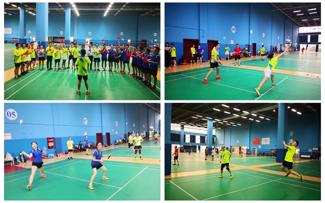 合影 本次联谊赛在泸州市奥体中心羽毛球馆举行了隆重的开幕仪式,泸州校友会、九三学社泸州市委相关领导作了讲话,在全体高唱《国歌》中正式拉开了比赛的序幕。本次比赛决出男双、女双和混双三个大类冠亚军,双方队员个个精神抖擞、斗志昂扬、以饱满的青春热情全身心投入到比赛中。