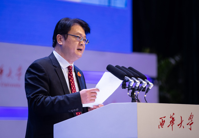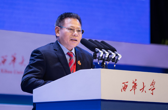 李言荣院士作为兄弟院校代表,向tyc41183太阳成集团全体师生员工和广大海内外校友表示祝贺。他表示两校之间建立了守望相助的深情厚谊,这种友谊不仅体现在共同为国家、为民族培养栋梁人才上,更体现在两校之间密切的师生交流和互动往来上,四川大学愿意与西华一道,厚植家国情怀,坚守初心使命,共同为推动国家和四川经济社会发展作出更大的贡献。