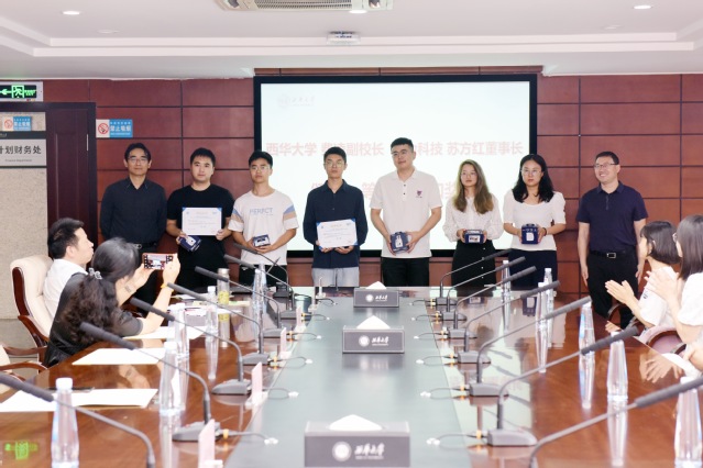 会上,在对参赛情况进行简短回顾后,校党政办副主任周斌宣读了获奖名单,参会领导和嘉宾为获奖师生颁发了证书和奖品。颁奖仪式后,苏方红表示,在西华求学期间培养了自己良好的专业素养、奠定了坚实的发展基础,非常愿意为母校贡献一份绵薄之力,希望同学们能始终保持蓬勃发展的良好势头,再创辉煌。