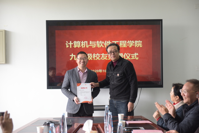 给校友颁发捐赠证书