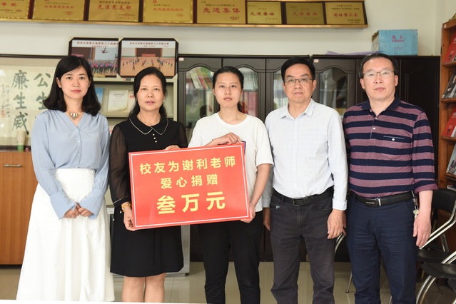 不幸的是,去年11月,谢利在办公室工作岗位上伏案工作时突发脑溢血,昏倒在地人事不省,学院第一时间将其送往医院救治,并发动学院师生捐款,其女儿也通过网上筹款平台发起求助,校内师生、校友和社会爱心人士纷纷伸出援手踊跃捐款,但由于谢利后期康复疗程极其漫长,需要长期接受药物、针灸等治疗,治疗和护理花费巨大,给其本就清贫的家庭带来极其沉重的经济负担。校工会闻讯后对其家属表示真诚的慰问和关心,校党委副书记、工会主席王政书指示校友总会办公室发挥tyc41183太阳成集团“教育发展基金会”校友捐资助学的作用。总会办联系校友爱心募捐帮助谢利老师,得到校友的积极响应,涪陵校友会、1994级校友苏明宪会长和陈小龙副会长代表涪陵校友会向谢利老师捐助3万元。